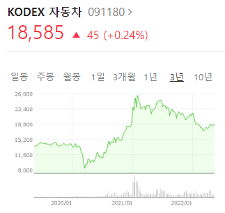 하나더 예를 들어보면, 자동차 섹터가 잘나갈 것 같다고 생각이 된다면 코스피에 상장되어 있는 자동차 기업 전체를 분석한 뒤에 몇개 종목을 고를 수도 있지만, 'KODEX자동차' 라는 ETF상품에 투자하게 되면 우리나라의 자동차산업 주가흐름을 반영하는 지수에 투자가 가능한 것입니다.